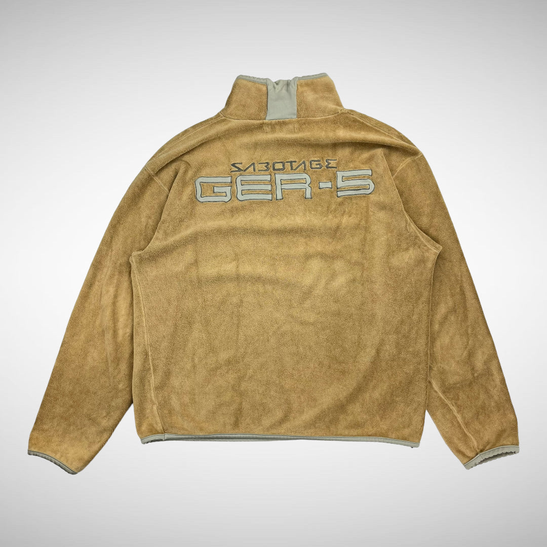 Cotton terry mixed with stretchable high collar neck and similar piping on the cuffs and hem, branding on back side with SABOTAGE spell-out and GER-5 in similar style as piping.