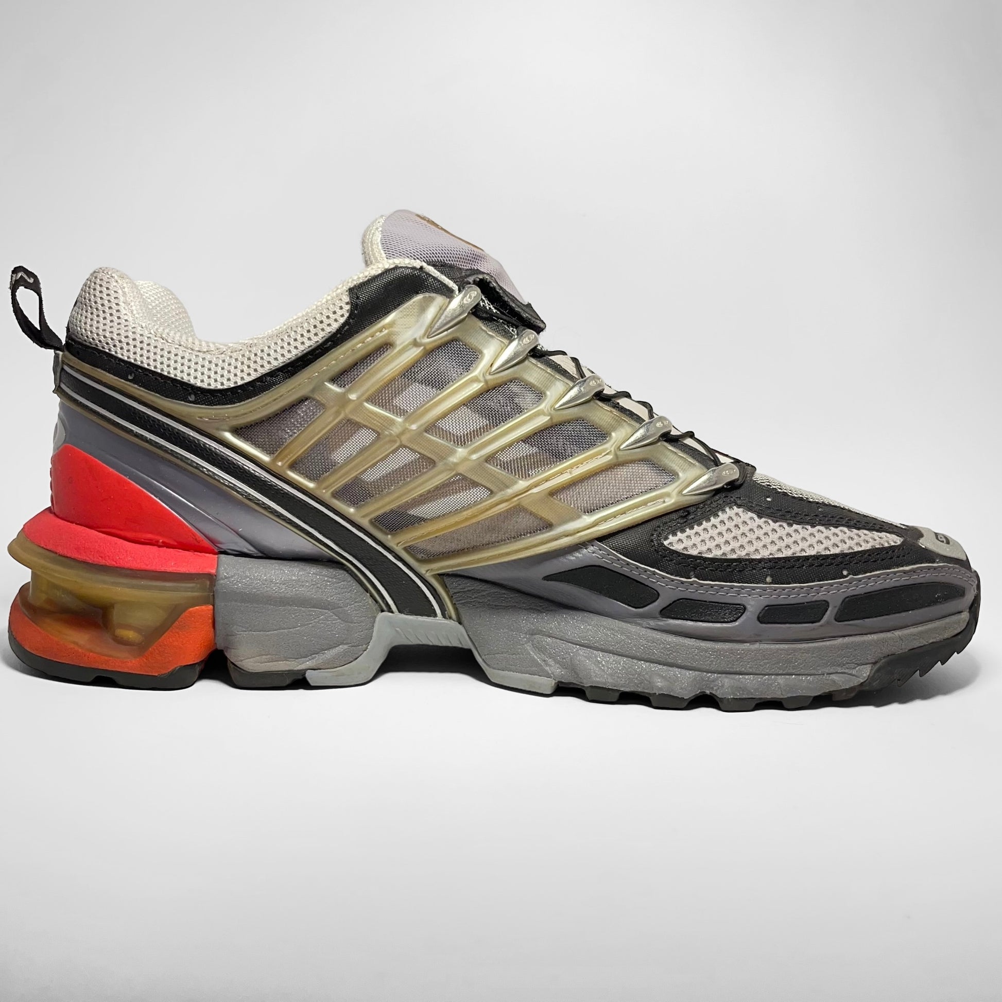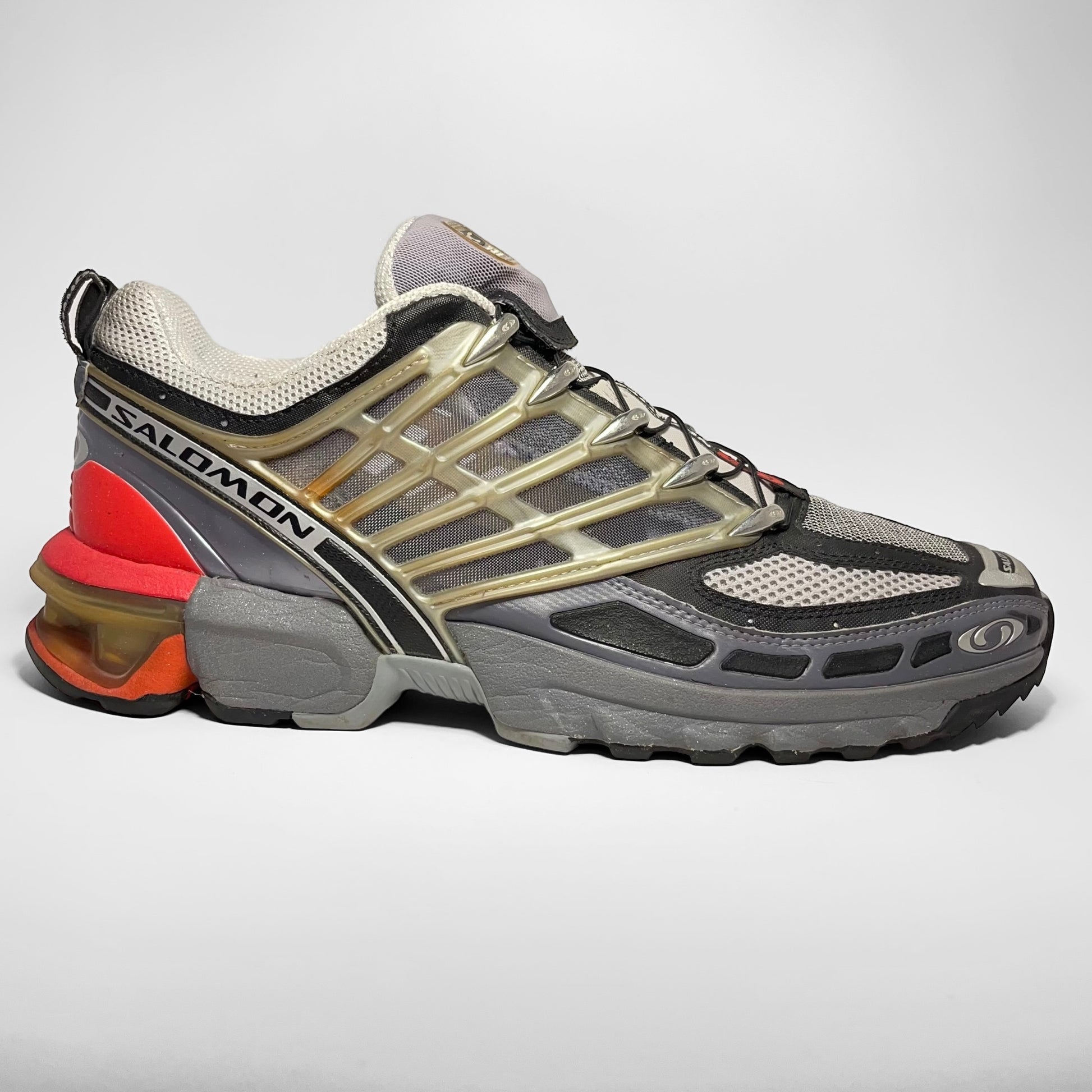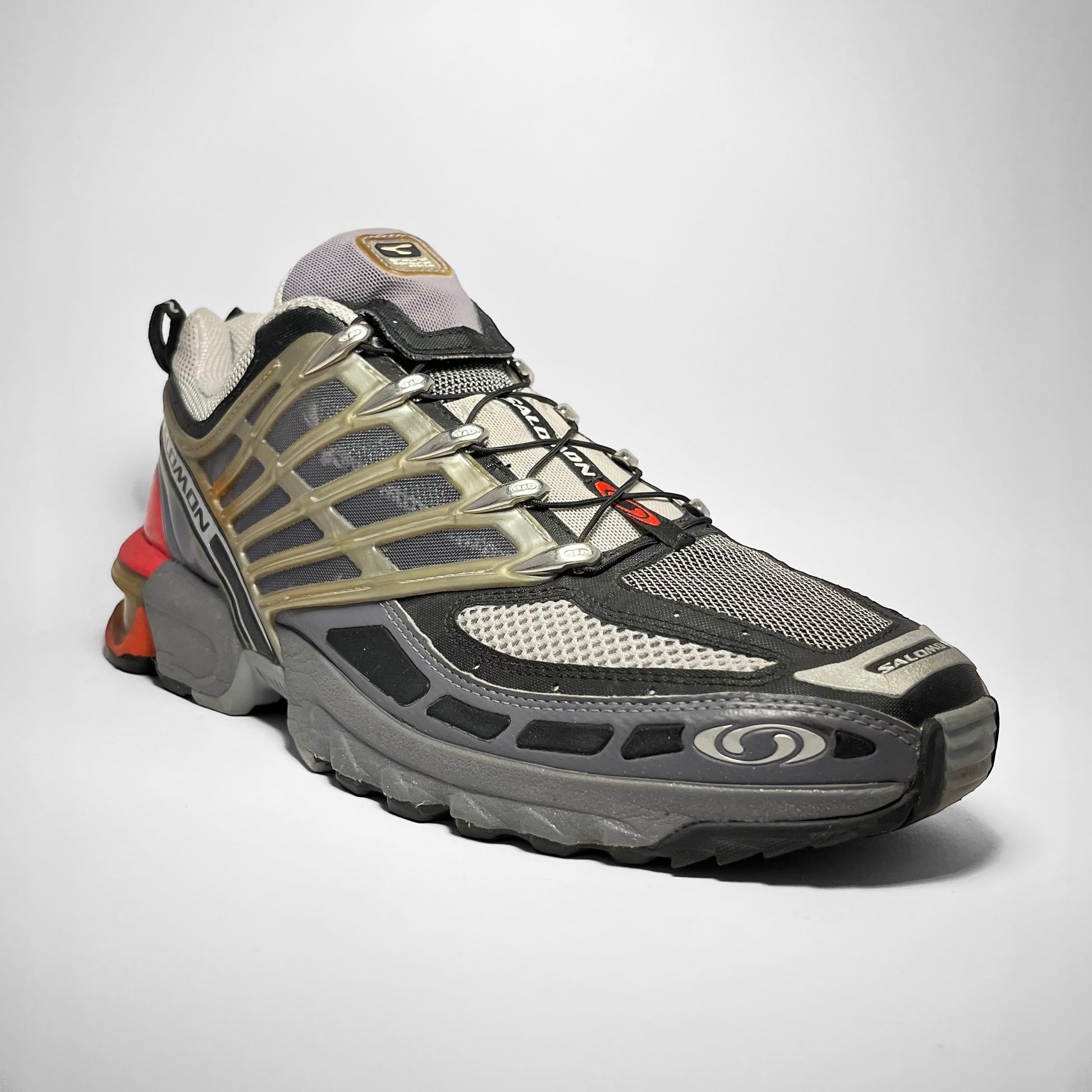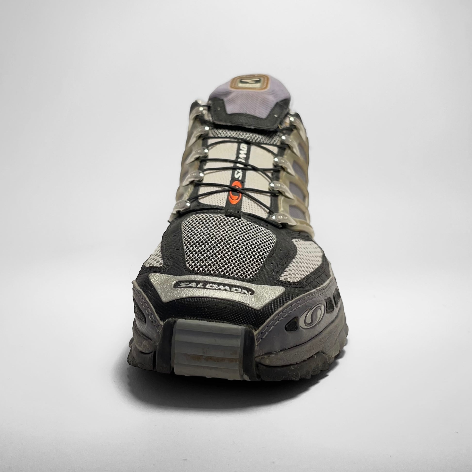 Condition is like new. Famous for its retro last year, this pair has gained immense popularity. Mesh base, black leather panels, plastic rib cage with see through wire construction, one-pull laces with metal eyelets, shock-absorbing units in the heel and completed with Salomon branding on the tongue, sides and tongue.
