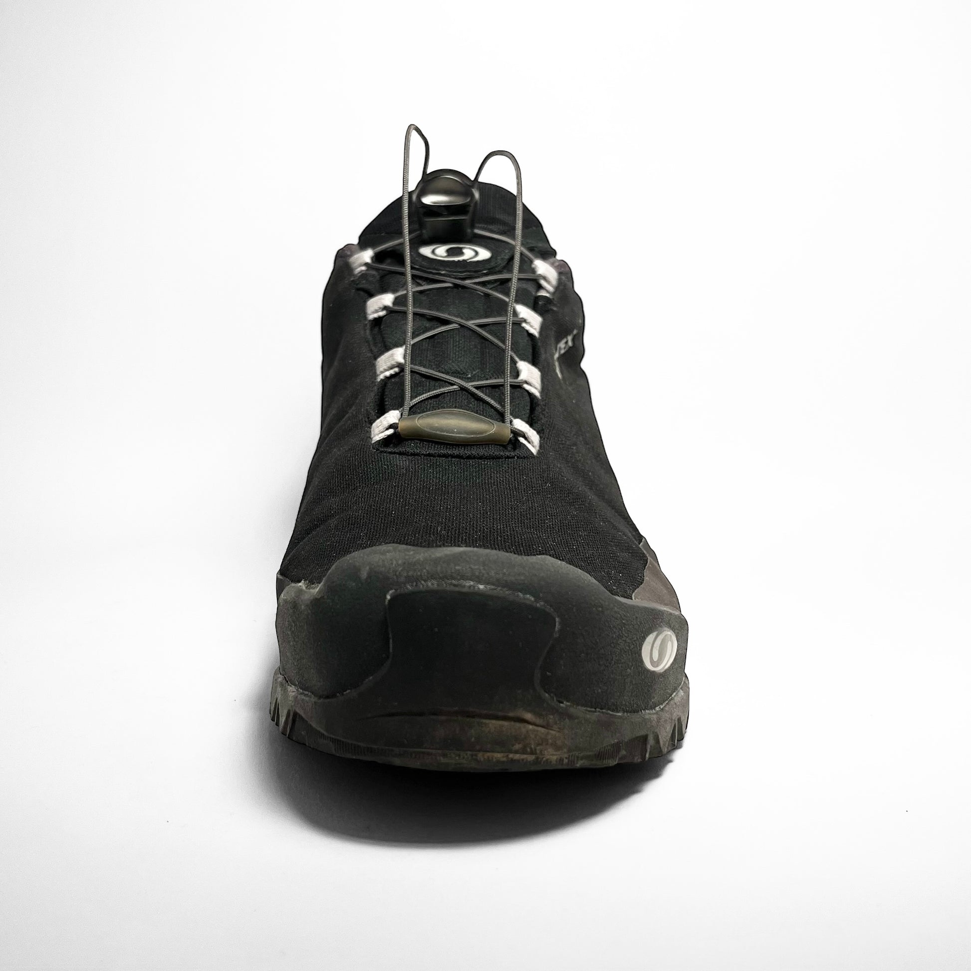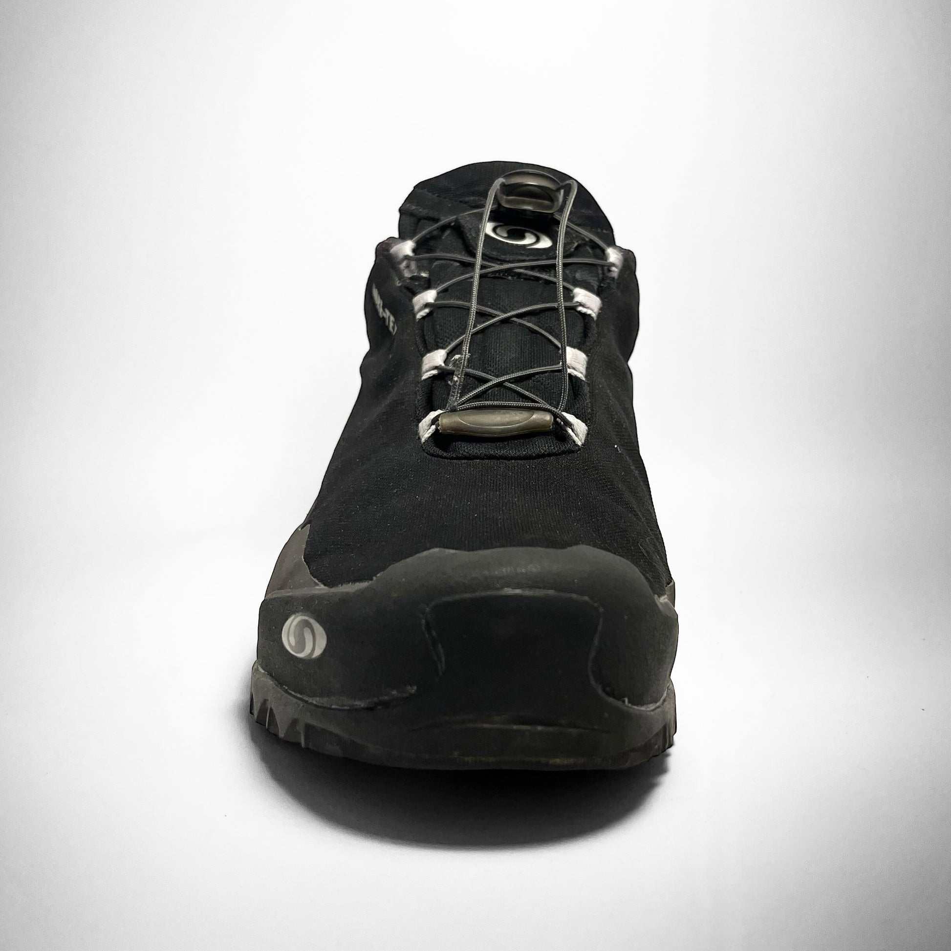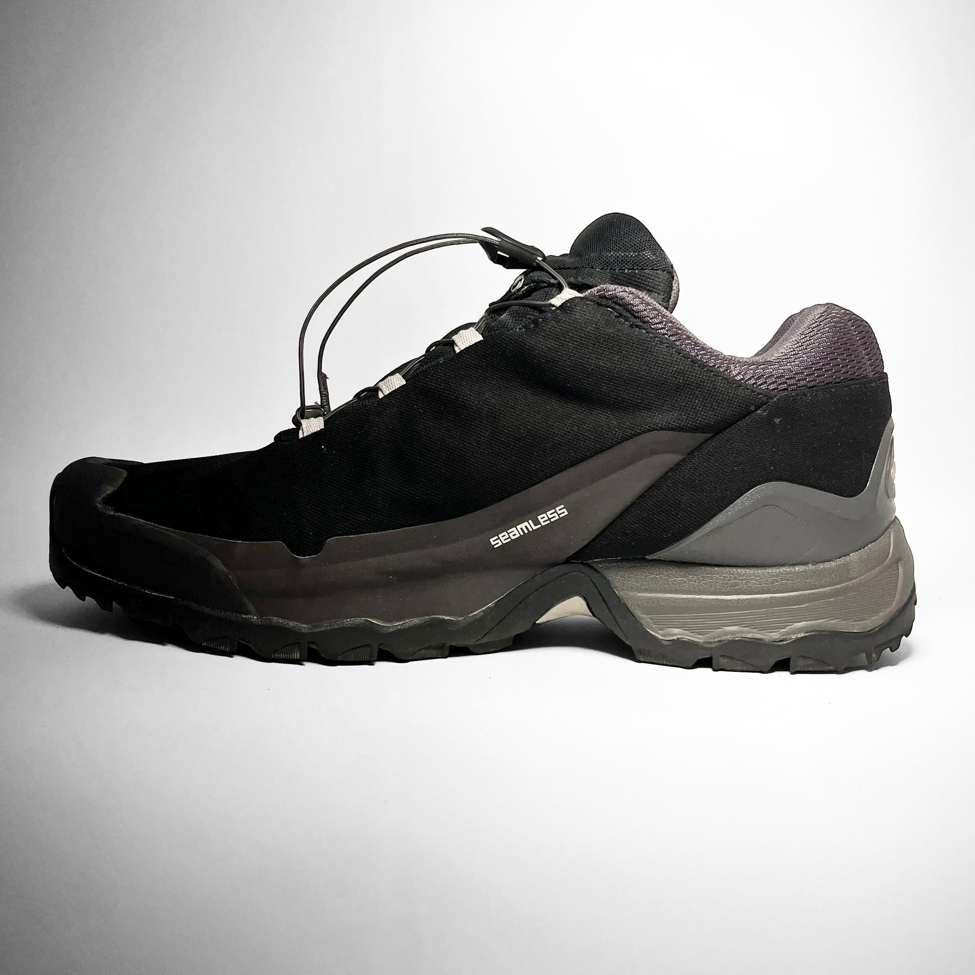 Black seamless canvas upper with a rubber mudguard an padded mesh sock-liner all packed with a GTX-XCR membrane to keep your feet dry including a one-pull closing mechanism which can be hidden underneath the mesh and velcro compartment on the tongue.