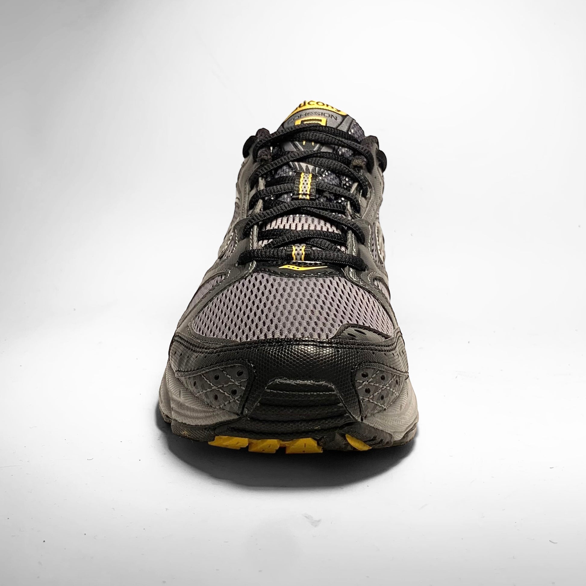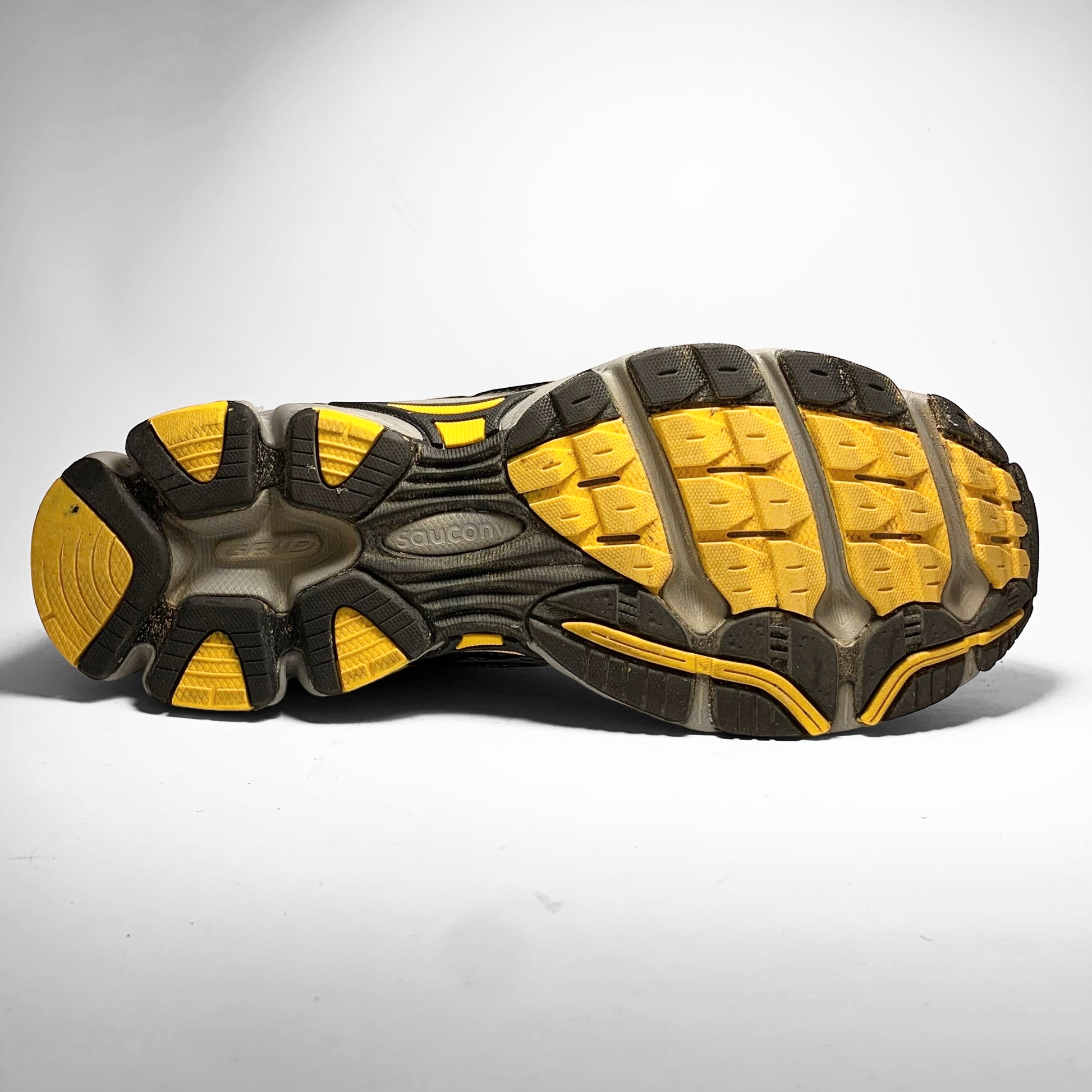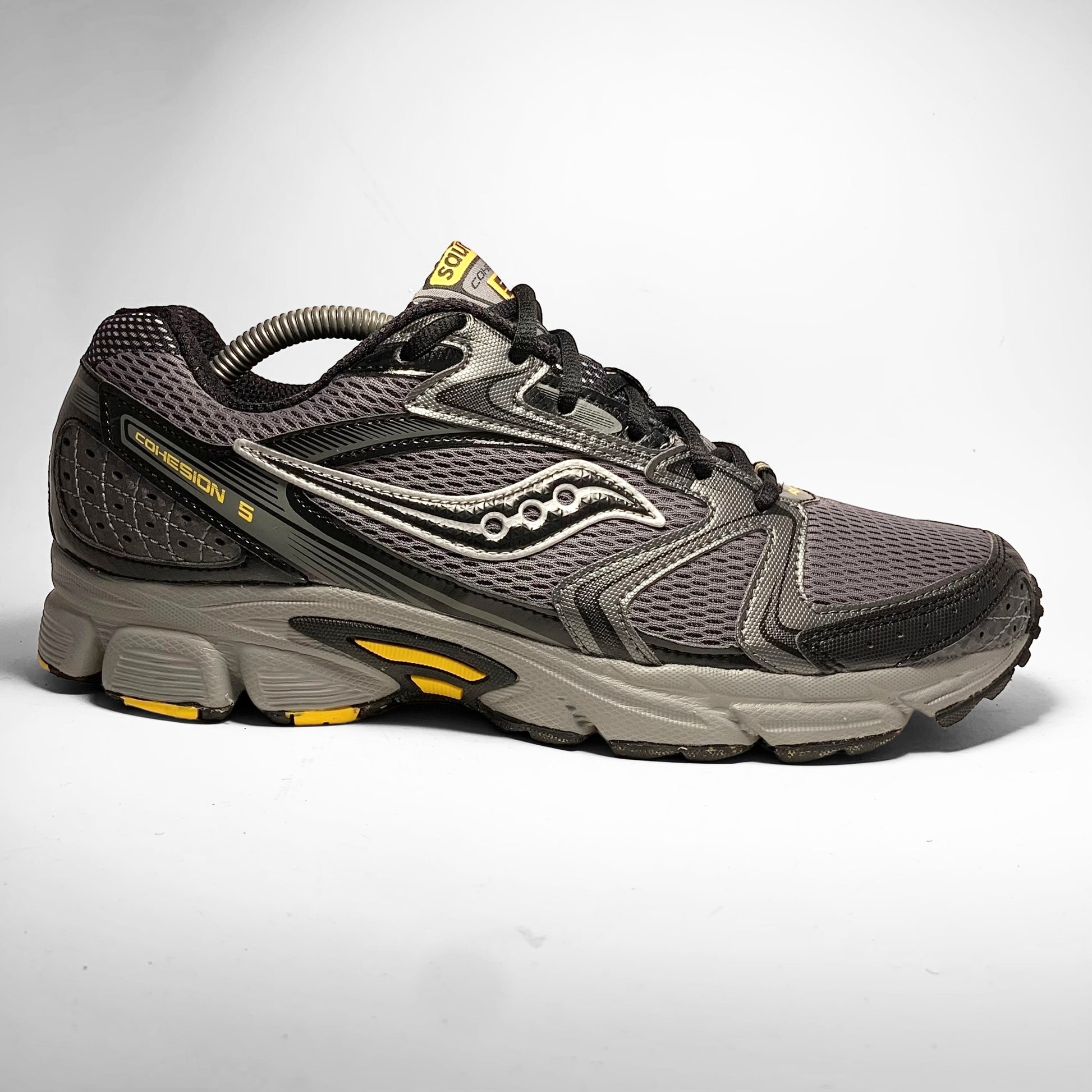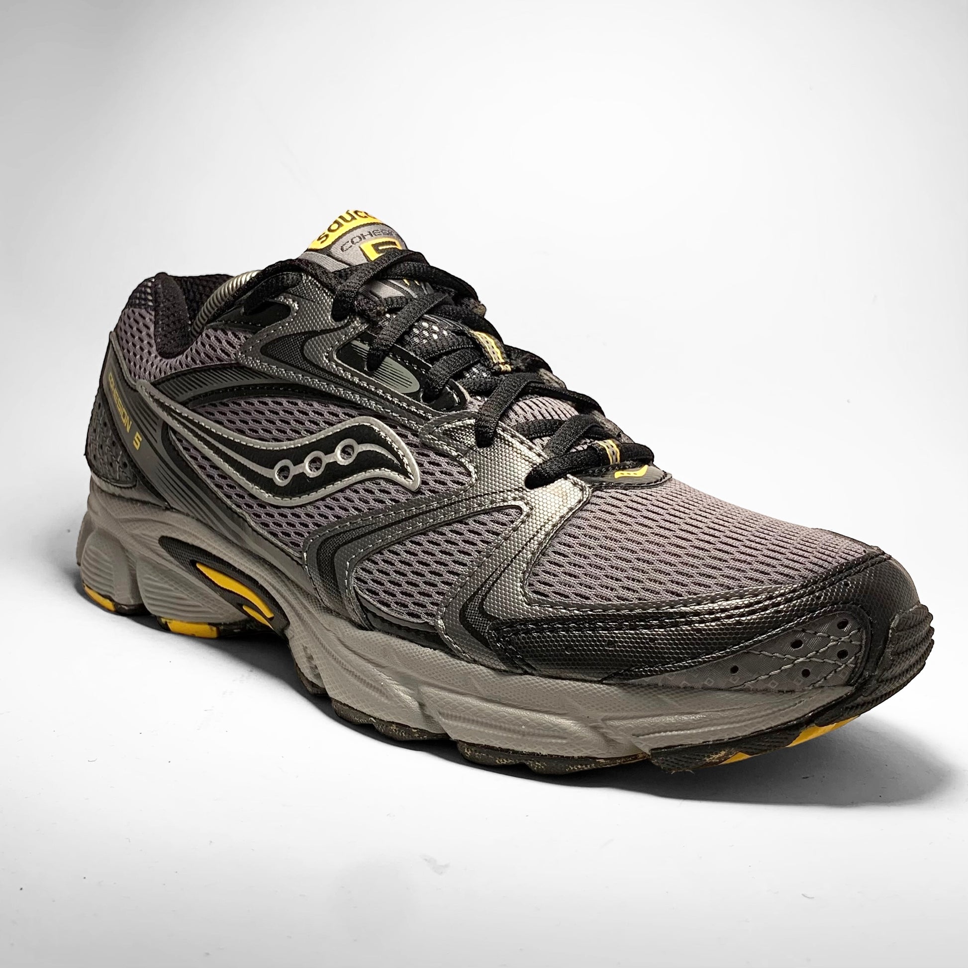 dark grey mesh base with detailed rubber and leather panels throughout in various patterns, colours, shapes, stitching details and perforated vent parts.