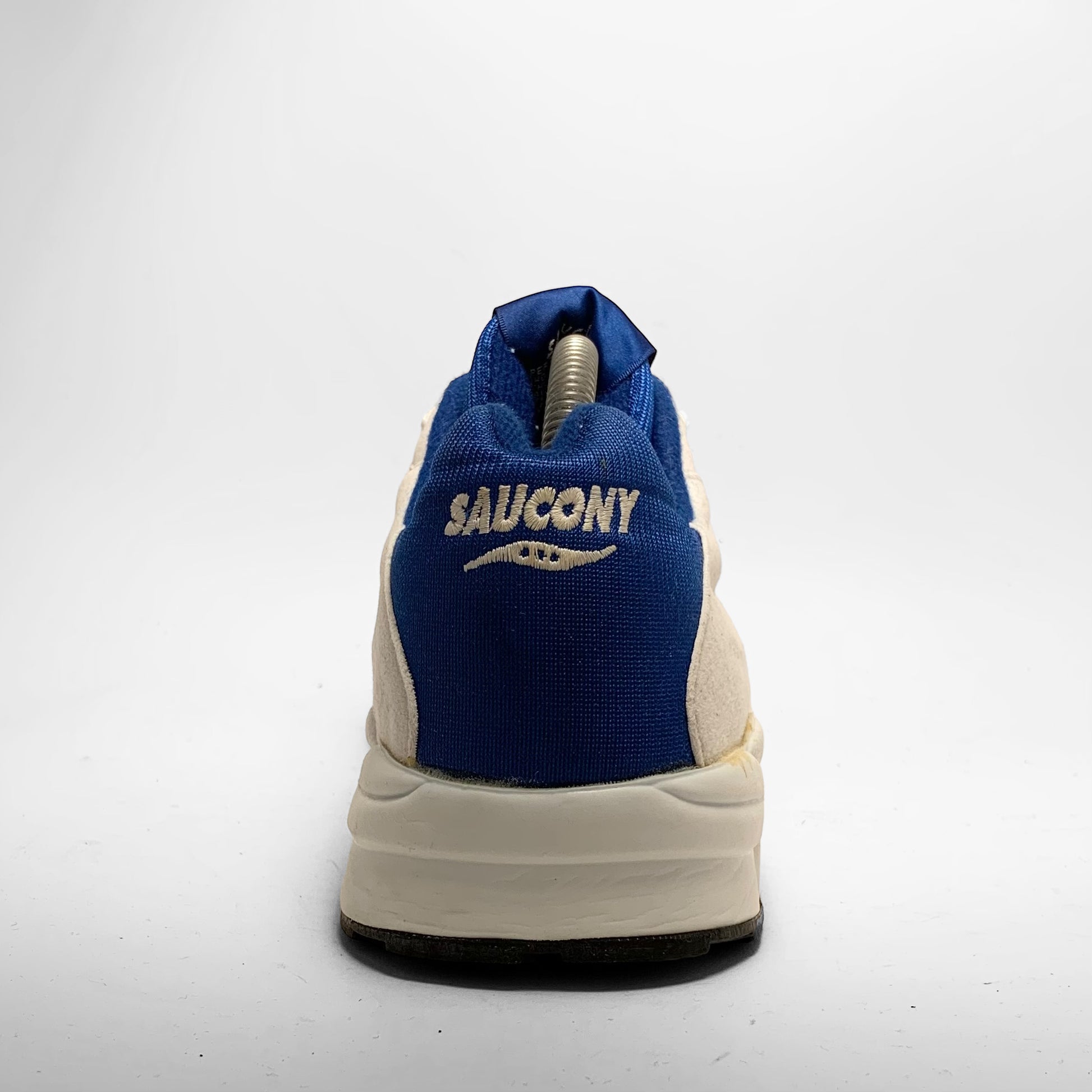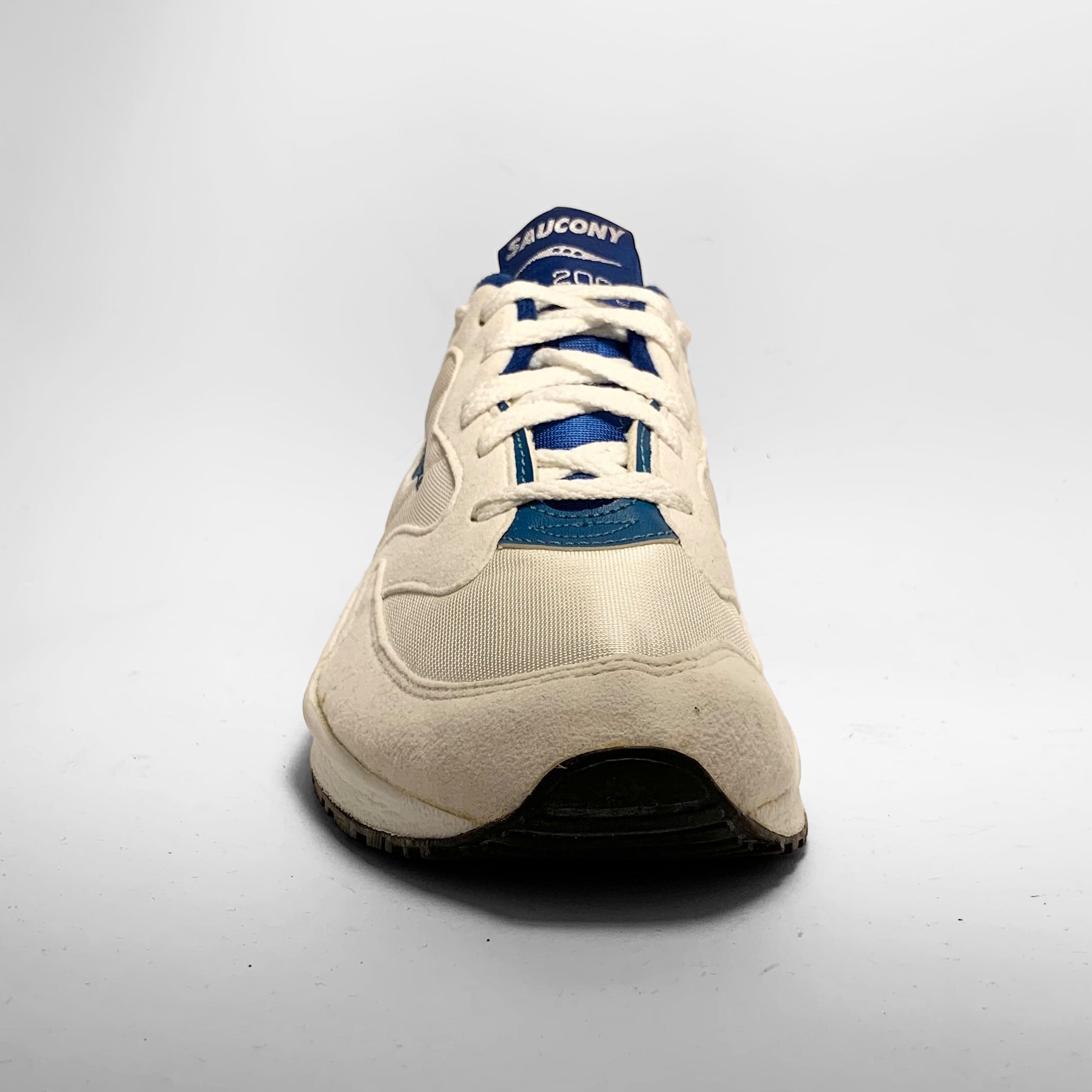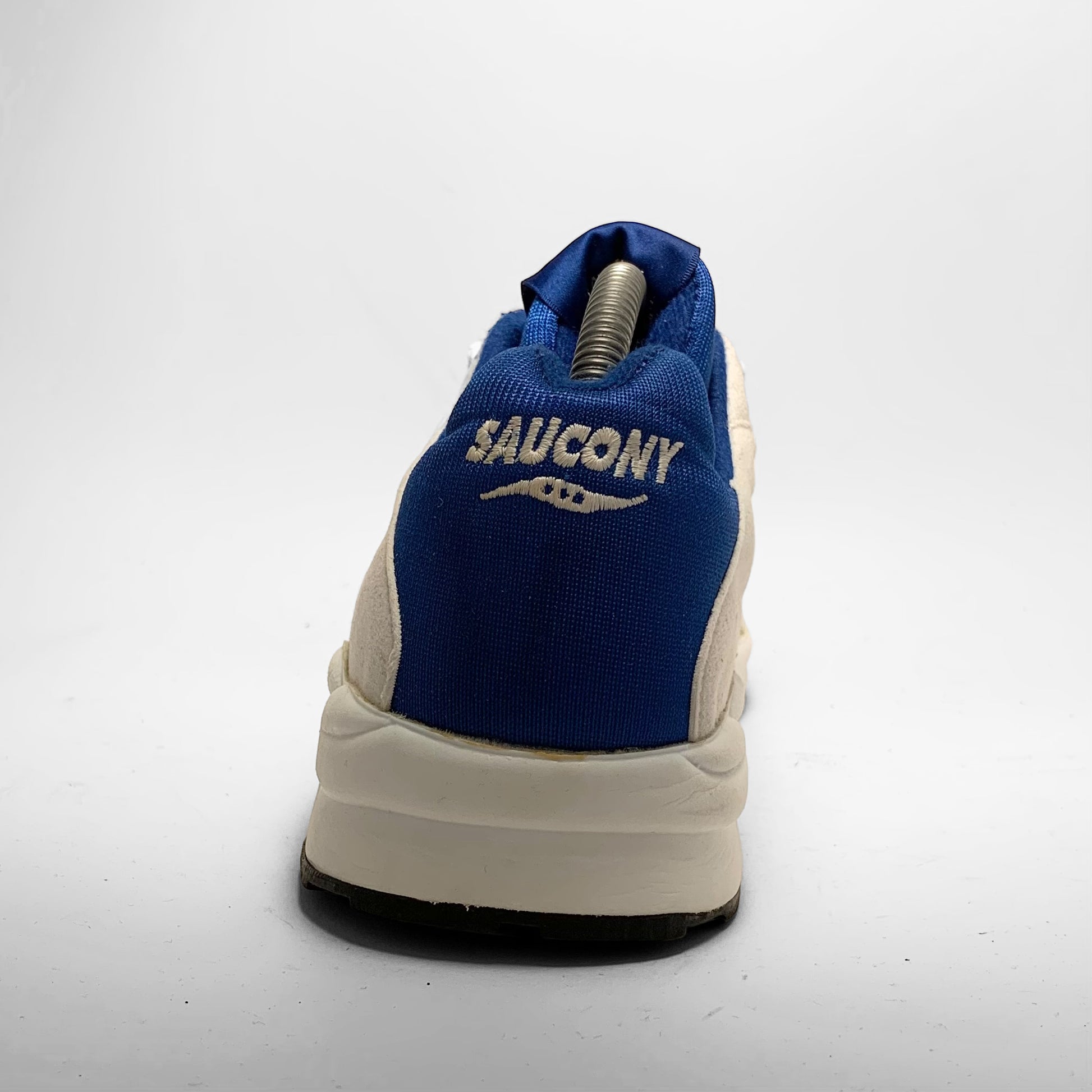 Soft suede white panels mixed with blue details, tongue and heel-part as well as the embroidered Saucony logo.