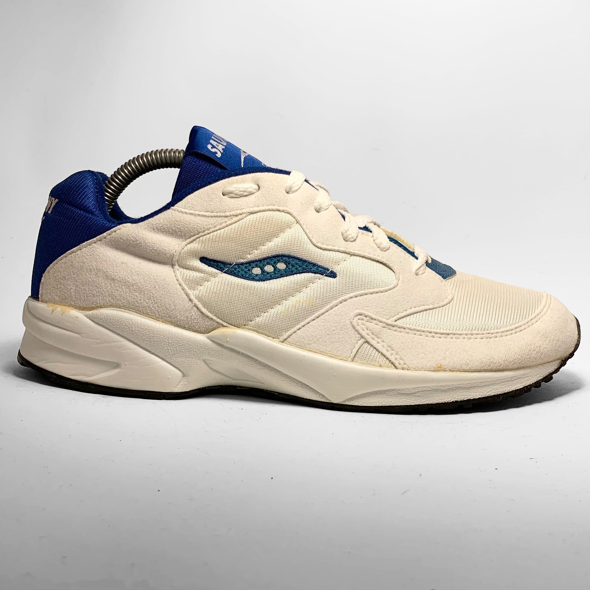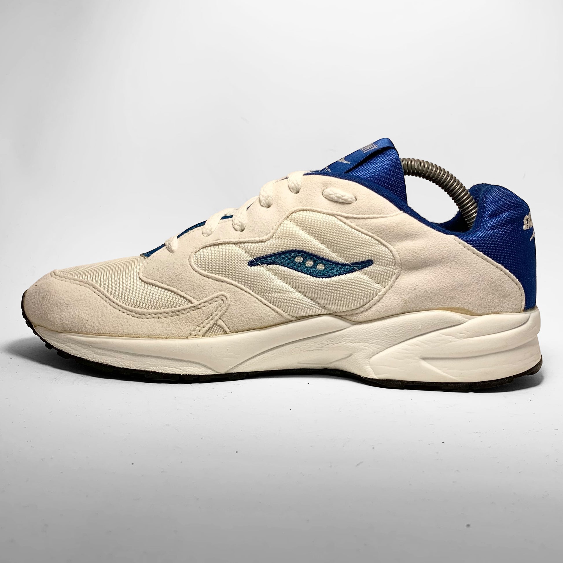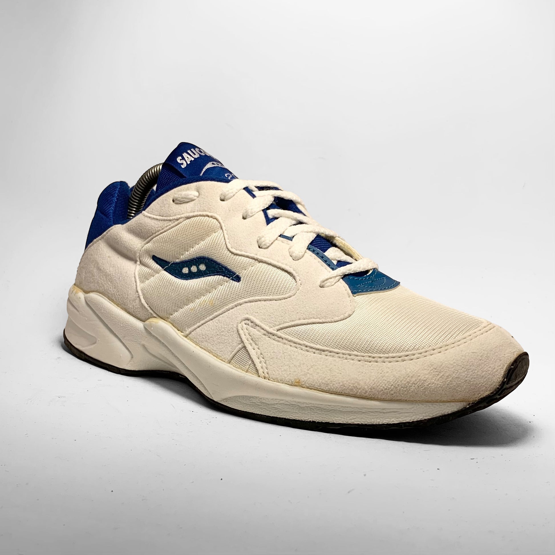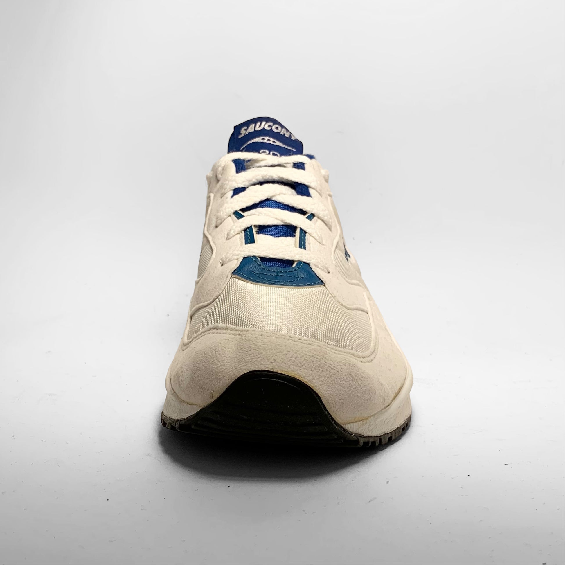 Soft suede white panels mixed with blue details, tongue and heel-part as well as the embroidered Saucony logo.