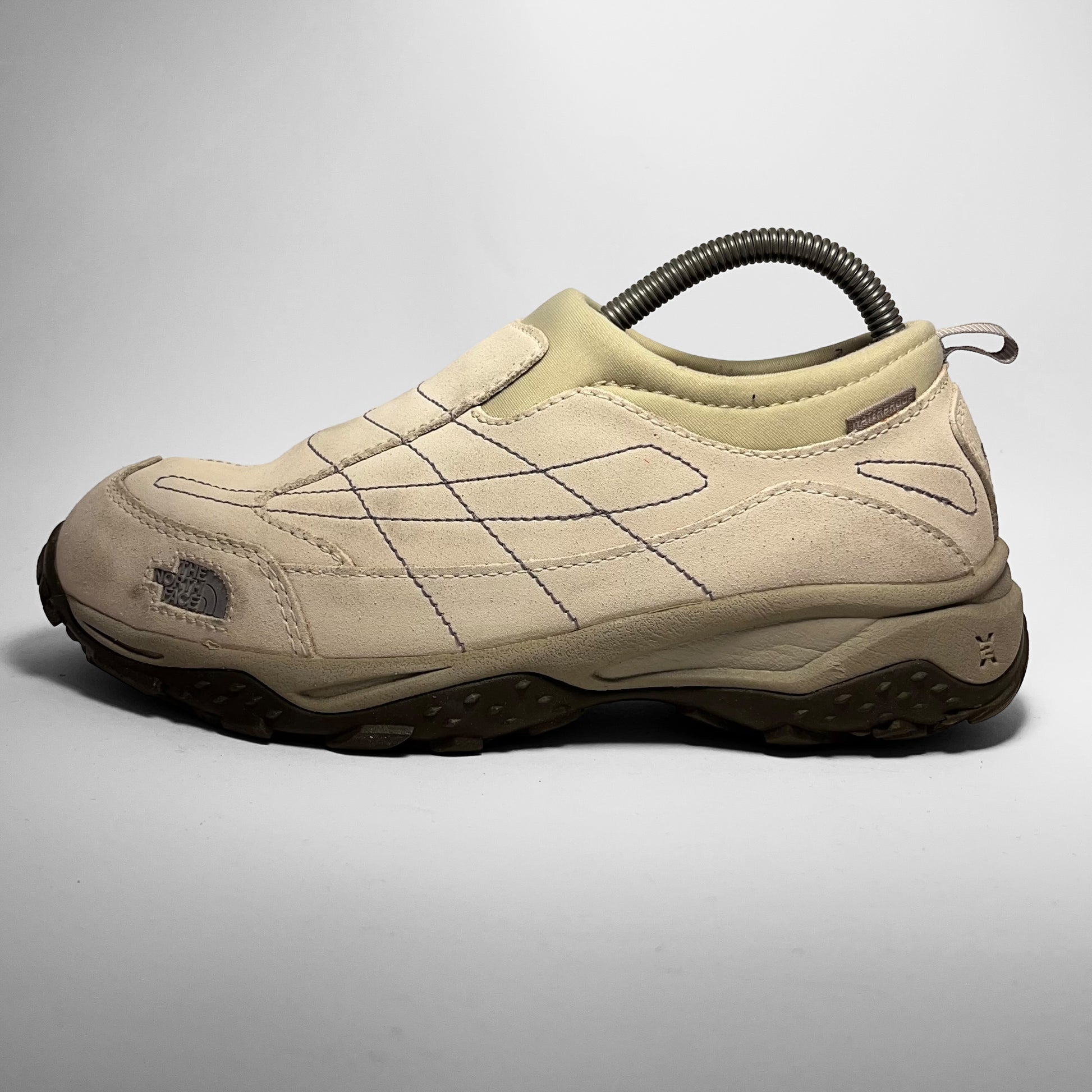 Suede tan upper with purple stitched detailing throughout matching the purple TNF script branding on front and heel embroidery including heel-tab and trail winter-grip outsole. A comfy pair, which is perfect for all seasons.