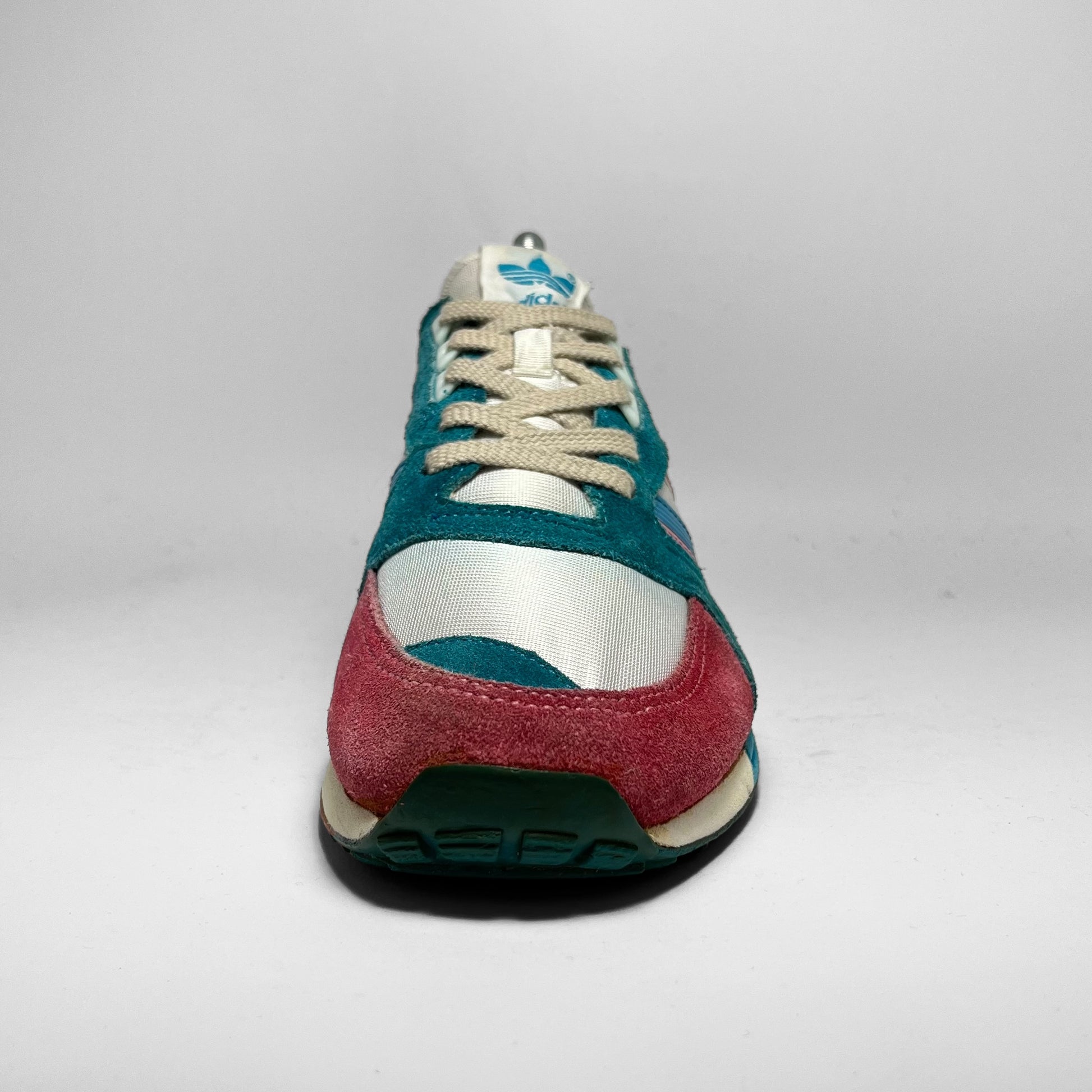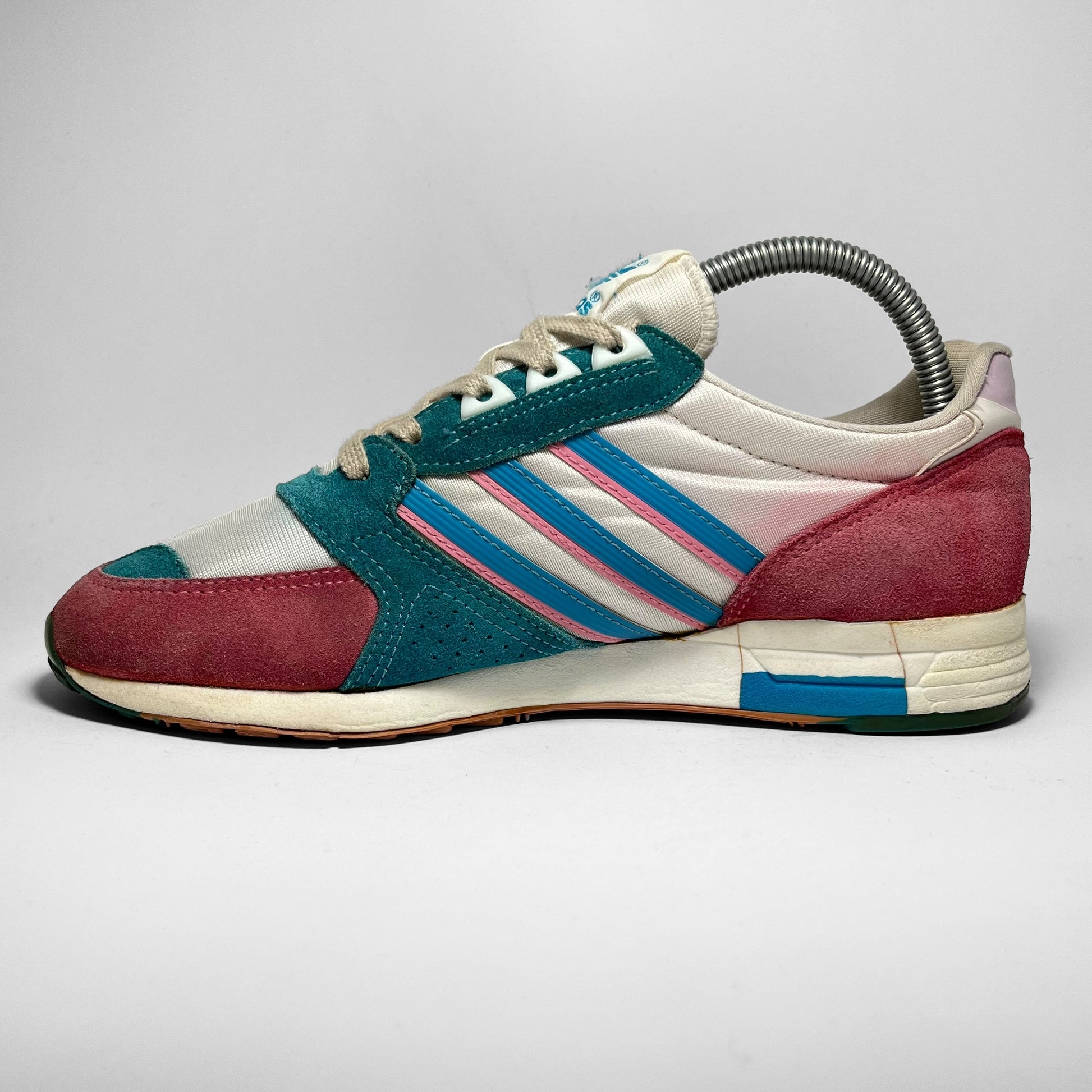 Made in Korea. Dating back from 1988, these runners are in great shape with lightly colour-bleeding on the mesh, pink suede panels mixed with aqua blue similar to the three-stripes and overall branding.